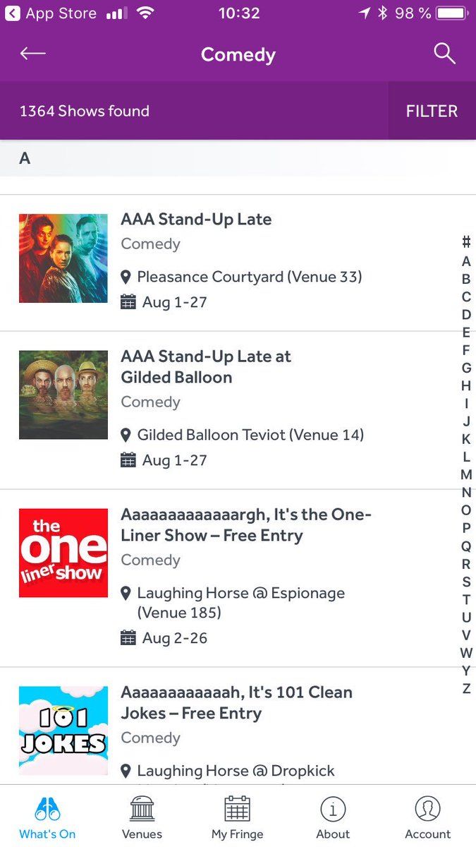 Aware of this dilemma, the shows are adding "A"'s to their show names in order to appear as close to the top as possible in listings 😂 #edfringe
