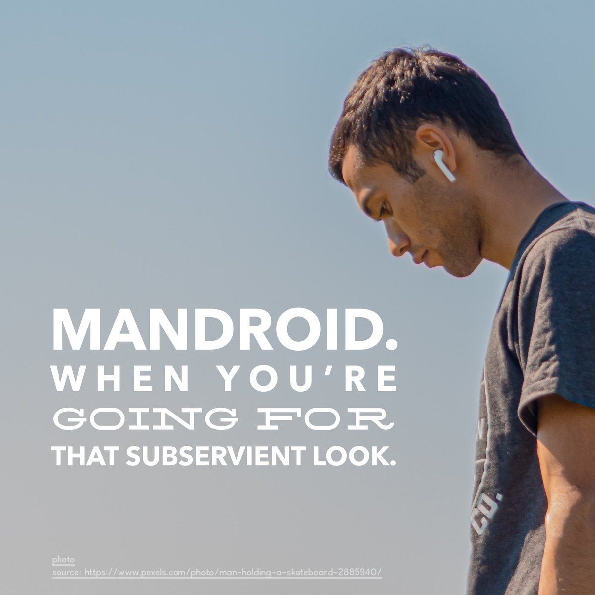 ”Mandroid. When you’re going for that subservient look.” #mandroid