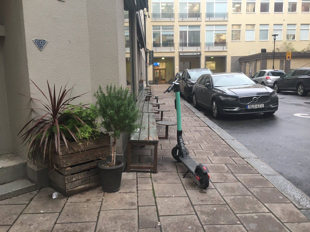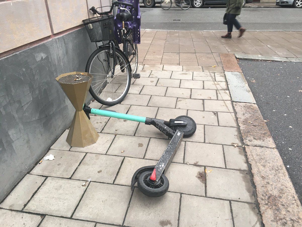 Oblivious sidewalk-parking. While one of these electric scooters in my pics seems more obviously to be an obstruction, they are both equal amounts of obstruction for someone who is visually impaired, or in a wheelchair, and needs to redirect to find a safe way around them.