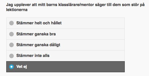 Förstår inte er enkät. I 8:an har barnen massor av ämneslärare. Alla agerar olika. Denna fråga och liknande blir missvisande. #skola #utbpol