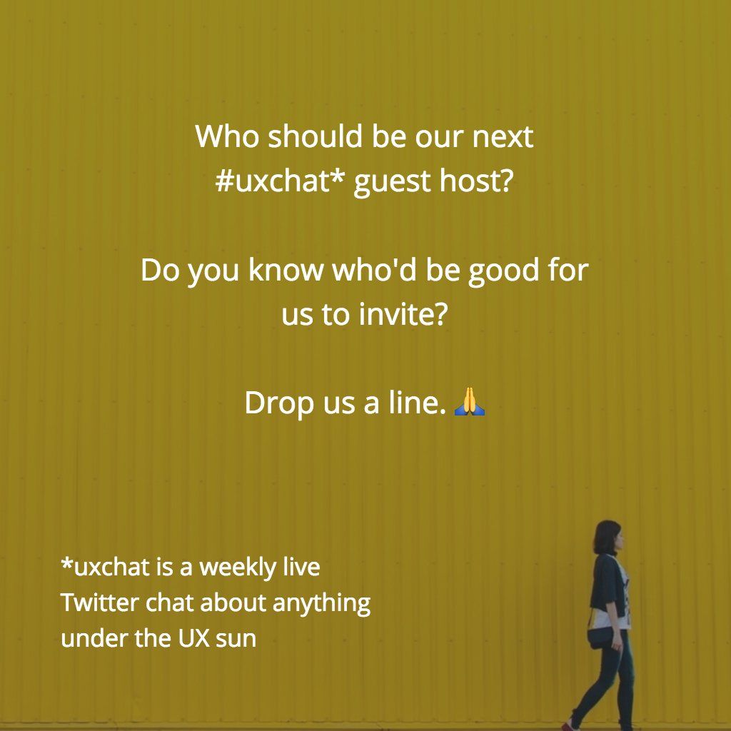 : Who should be our next #uxchat guest host? Drop us a line 🙋