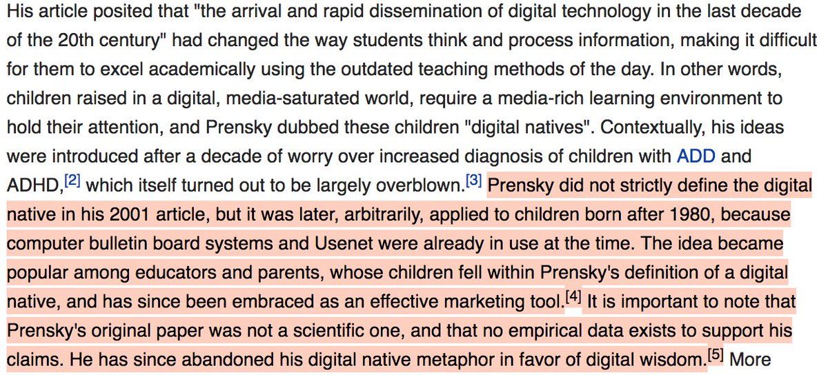"...note that Prensky's original paper was not a scientific one, and that no empirical data exists to support his claims." #digitalnative